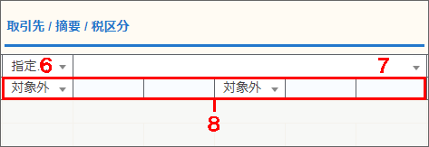 | 8 | 税区分 (左側3項目は相手税区分) |
