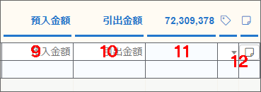 | 9 | 預入金額 | 預金が増えるときに金額を入力します。 |